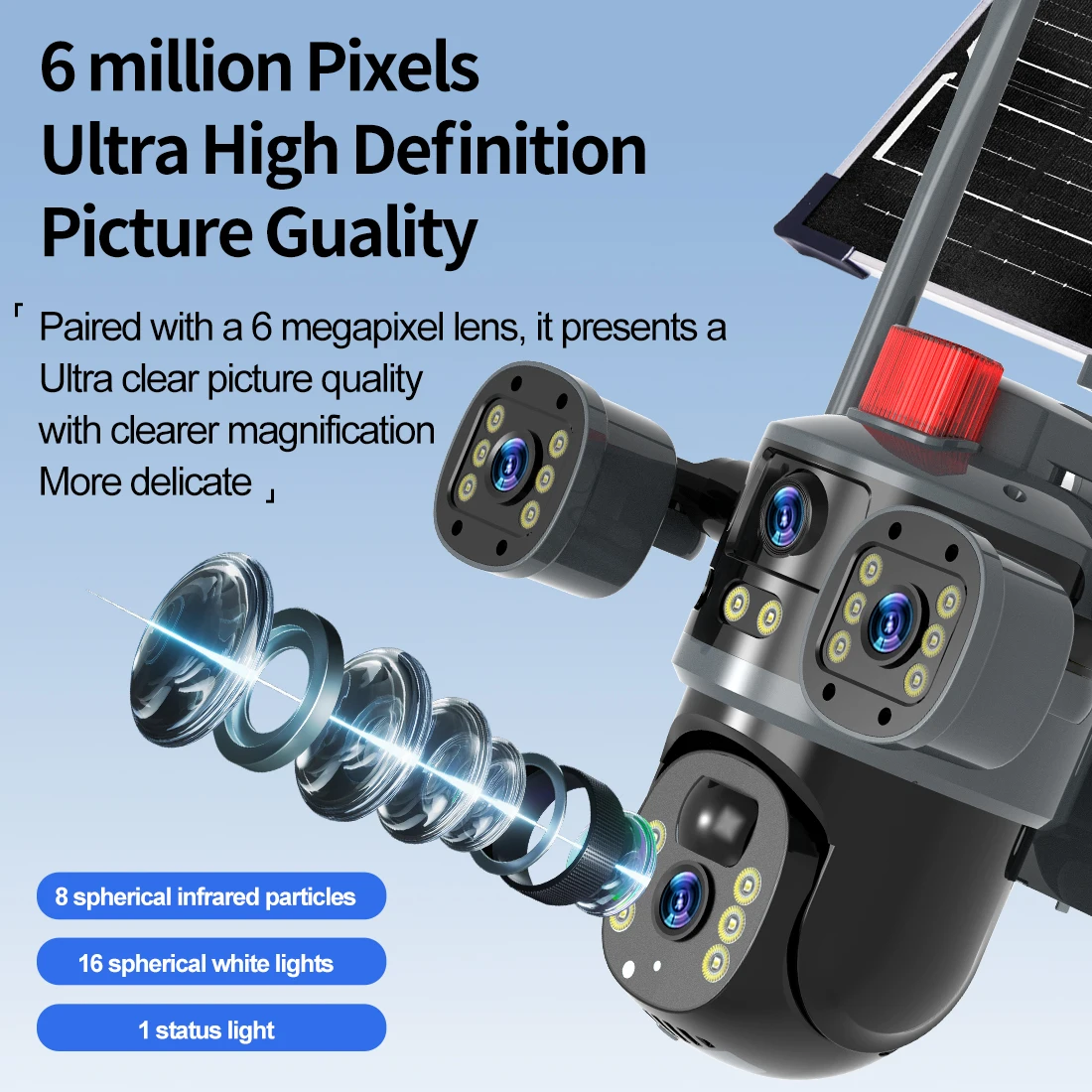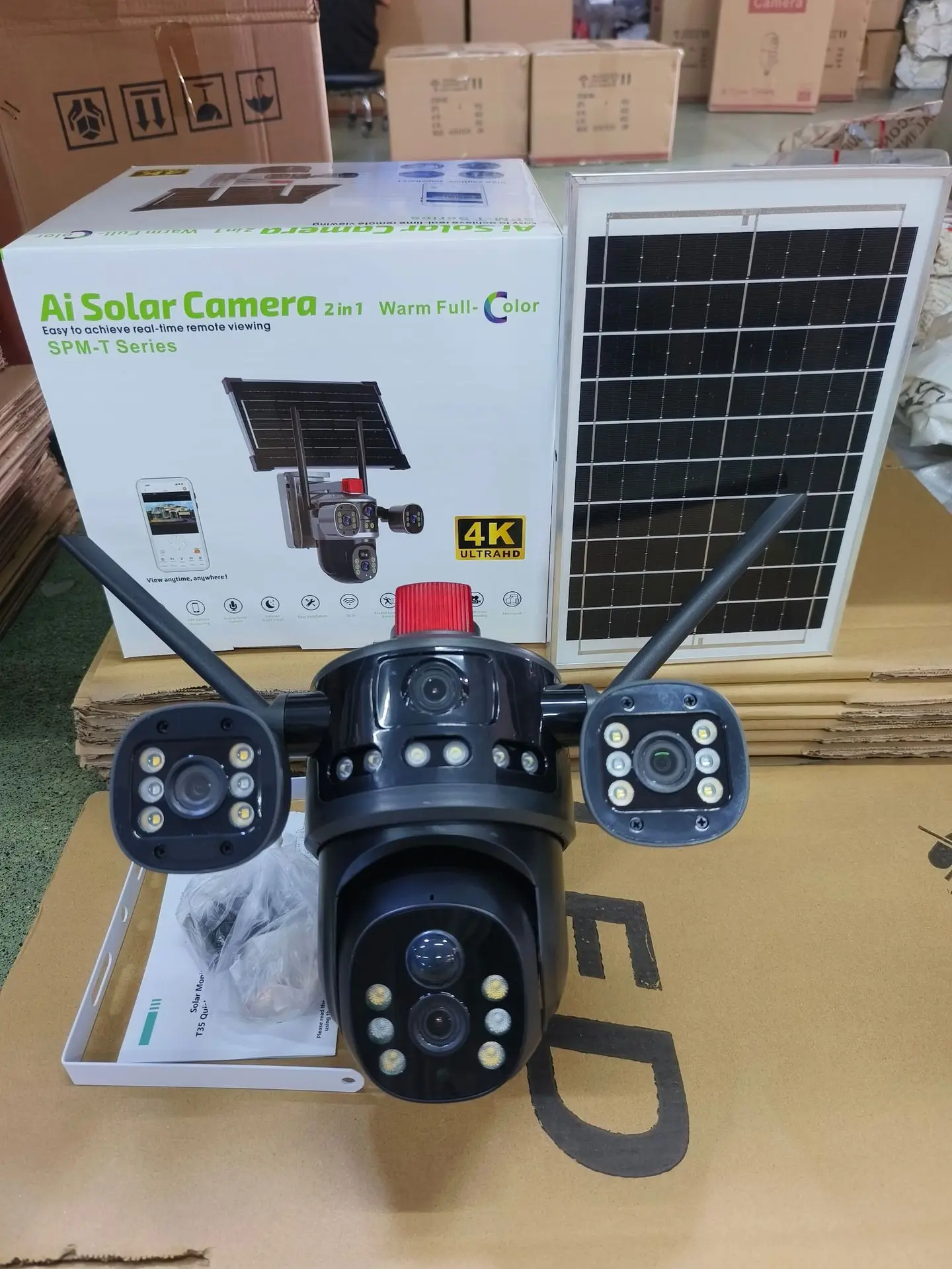 La caméra fonctionne via carte SIM 4G et intègre un panneau solaire avec batterie adaptée, ce qui lui permet une autonomie totale, même sans connexion Wi-Fi ni alimentation secteur — idéale pour les zones isolées ou dépourvues d'électricité