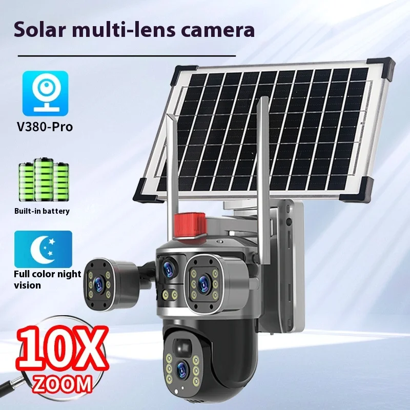 Caméra de Sécurité V380 4G PTZ – 12 MP, Triple Objectifs, Vision 360°