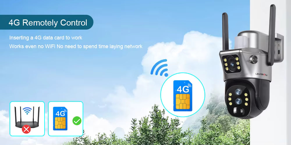 Connectivité 4G + Wi‑Fi 2,4 GHz : installation sans fil, visualisation à distance via l'application V380 Pro