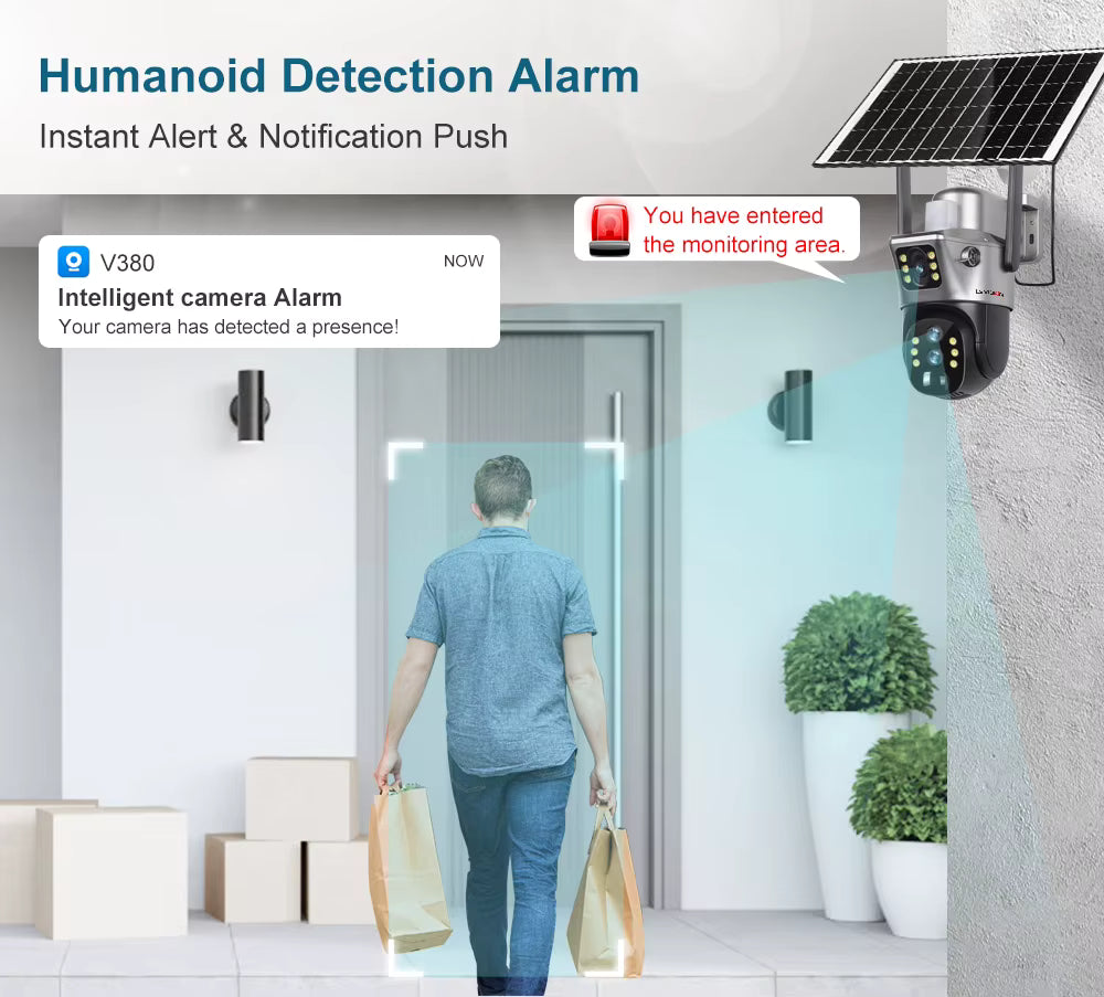 Suivi automatique intelligent de silhouette humaine grâce à la détection PIR + IA, avec alarmes sonores et notifications instantanées